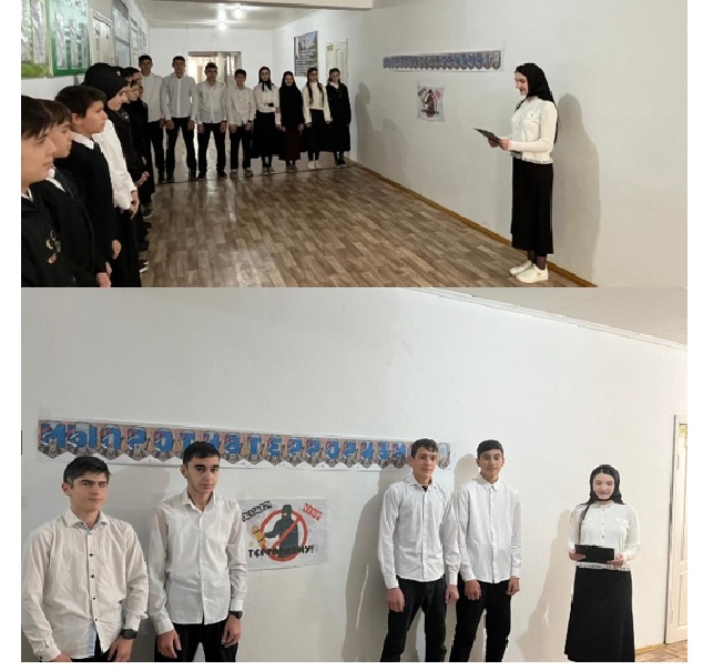 27.11.2024г. в МБОУ «СОШ с.Зандак-Ара» проведено мероприятие по профилактике терроризма и экстремизма на тему: «Мы против терроризма», охват-23 чел.